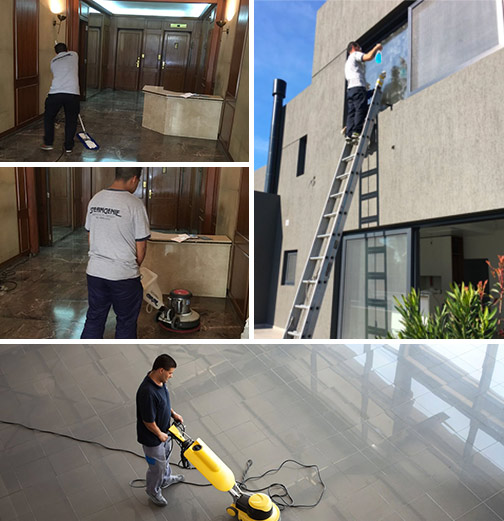 Combinando las nuevas tecnologías y un personal capacitado para hacer un trabajo más eficiente, realizamos una limpieza integral y profunda para consorcios en edificios pequeños y grandes.